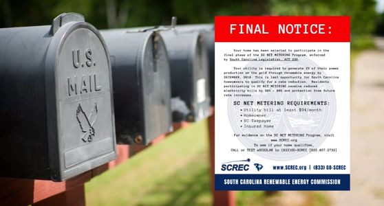 Click below to find out more information about why your home was selected to participate in one of the S.C. NET METERING PROGRAMS.